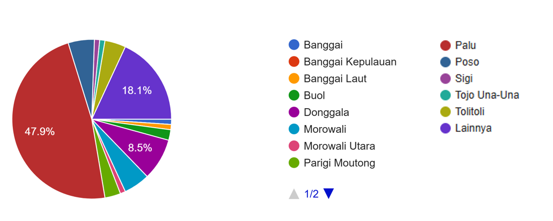 Undangan kegiatan dihadiri oleh Pemerintah Kota Palu, Pemerintah Daerah Sulawesi Tengah, Para Bupati dan Wali Kota, Polda Sulawesi Tengah, Kepala OPD terkait, akademisi, media, hingga pihak swasta. Grafik di atas merupakan kehadiran beragam stakeholder dari berbagai sektor dan daerah para peserta yang diharapkan dapat memperkuat sinergi dalam memanfaatkan informasi iklim untuk perencanaan dan mitigasi risiko di daerah.