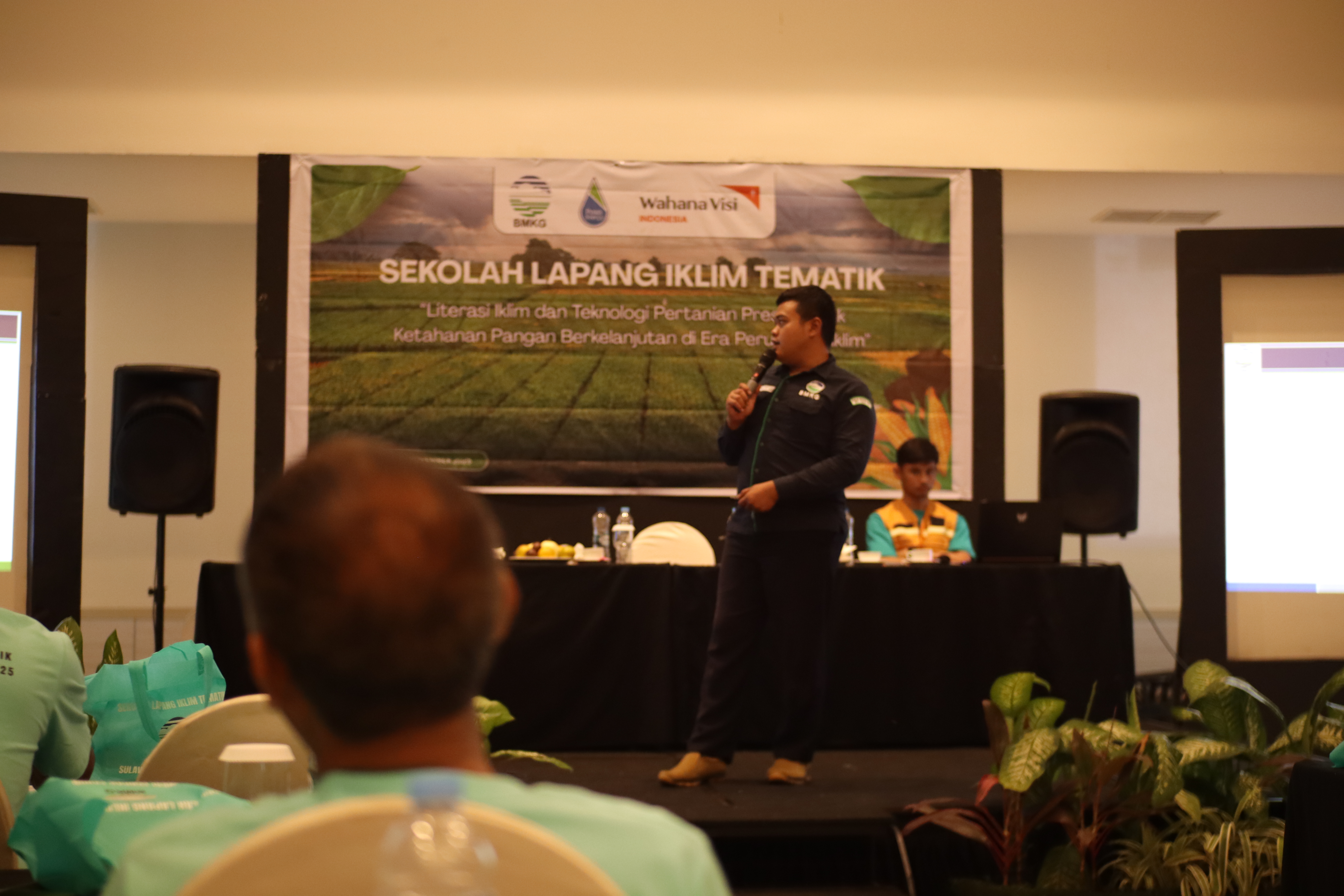 Materi penyampaian meliputi literasi iklim, pemanfaatan teknologi pertanian presisi, serta strategi adaptasi pangan berkelanjutan di tengah perubahan iklim.